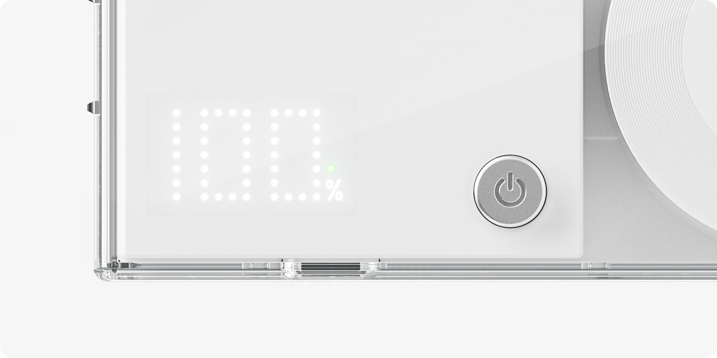 Forget blinking lights. Our dot-matrix display gives you the exact percentage.
