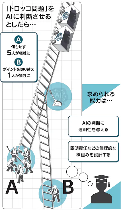 文系志望の生徒も履修する必修科目の数学Iに新設を検討しているのは、AI技術の基礎となっている理論などを学ぶ二つの単元だ。「社会を読み解く数学(仮称)」では、選択科目の数学Cで扱ってきた「行列」や「ベクトル」などAIに関わる要点を抜き出して指導。「数学ガイダンス(同)」では高校の数学で学ぶ内容が実社会でどのように役立っているのかを教え、数学への関心を高める。
