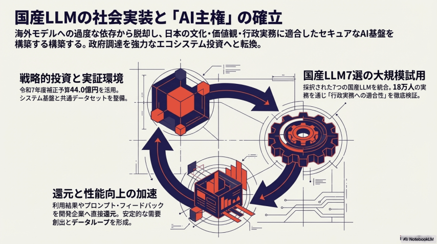 長期的な視点では、2027年度の本格導入後に蓄積されるフィードバックデータが、国産LLMの性能向上に直結します。政府が「大口顧客」として国産AIを継続的に調達することで、民間のAI投資も喚起される好循環が生まれる設計です。日本がAI分野でグローバルな自律性を確保できるかどうか、その試金石が今まさに始まろうとしています。