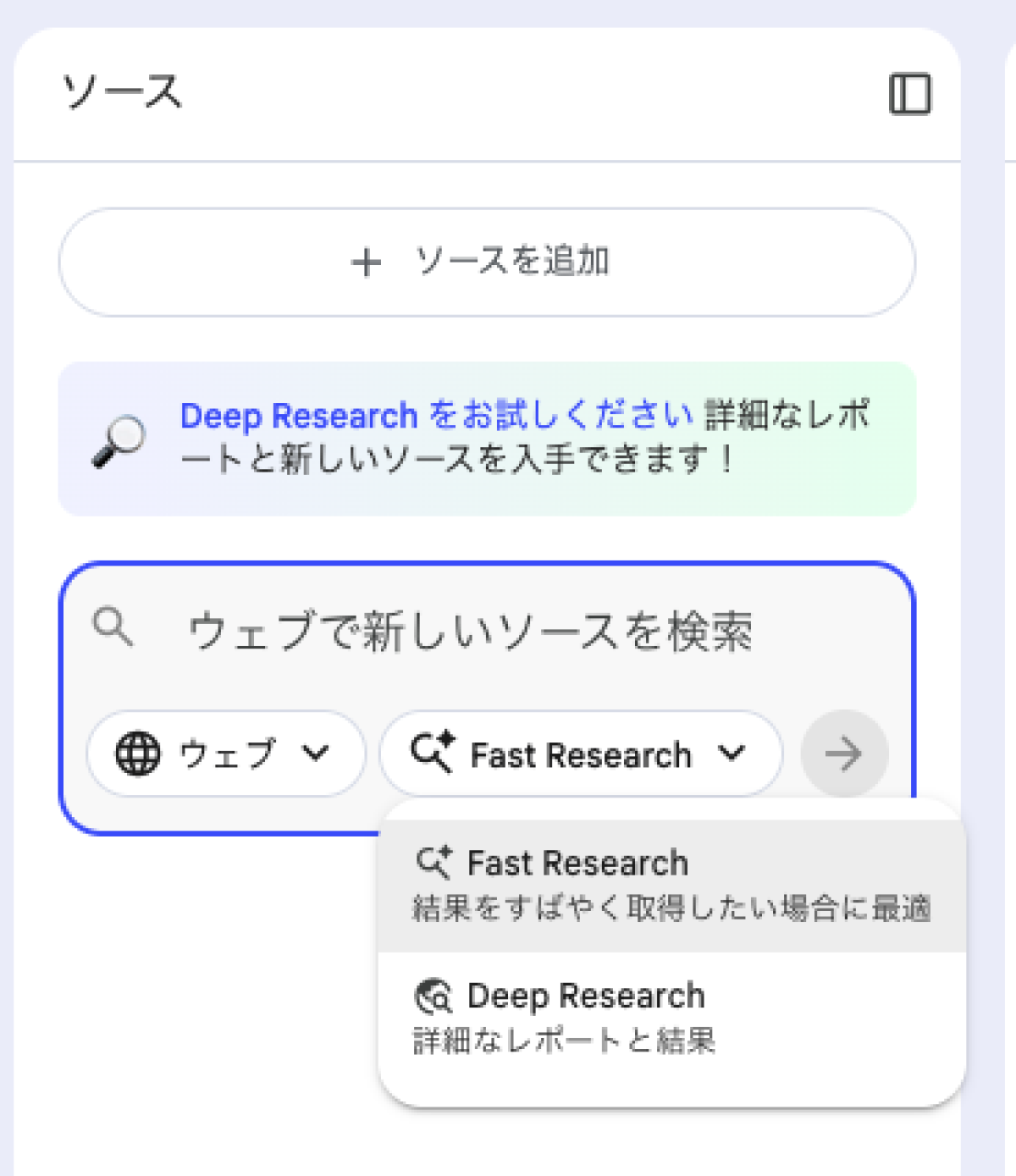 ## ソース検索機能:ファストリサーチとディープリサーチ