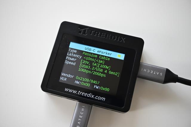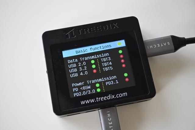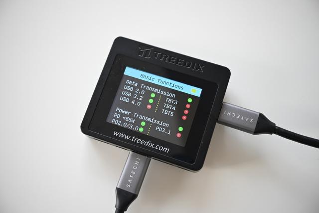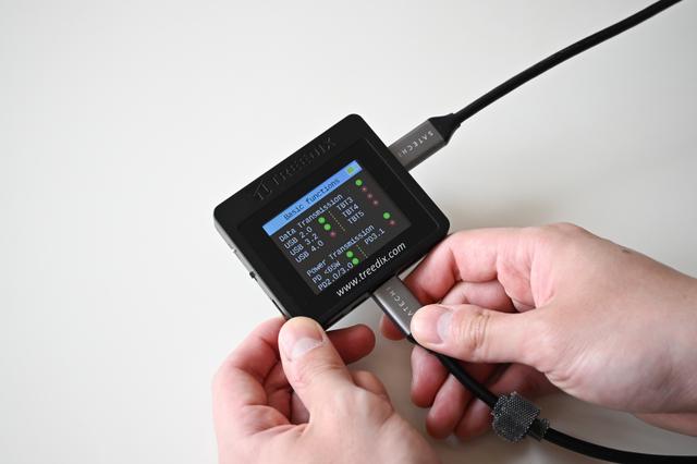 - TreedixのUSBケーブルテスターは、ケーブルのスペック(充電ワット数、データ転送速度、映像出力、断線状況など)をわかりやすく表示します。
