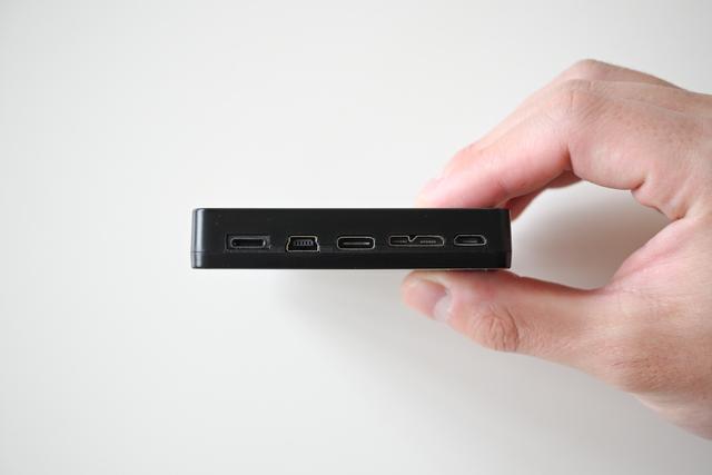 本体の側面には、Type-CやType-Aはもちろん、ライトニング、Mini B、Micro B 3.0、Micro Bといった幅広いポートが備わっています。 **これ一台で、家にあるほとんどのUSBケーブルを接続することができます** 。