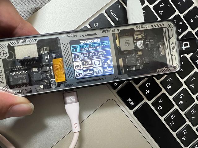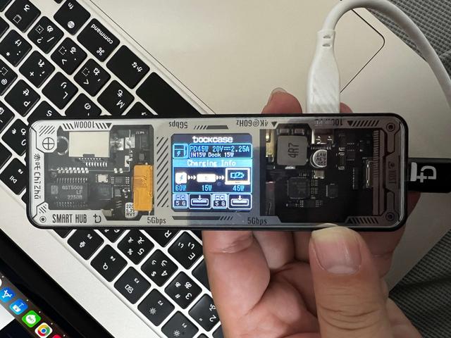 今までいわゆる一般的なハブを使ってきました。ディスプレイもなければ、スケルトンでもありません。それで十分満足してはいたのですが、 **「 [DOCKCASE 6-in-1](https://www.amazon.co.jp/dp/B0C9LVQS5L?ots=1&tag=lifehacker-ed-22&linkCode=ogi&th=1&psc=1&ref=mgac2017) 」を使うとまったく違う体験が待っていました** 。